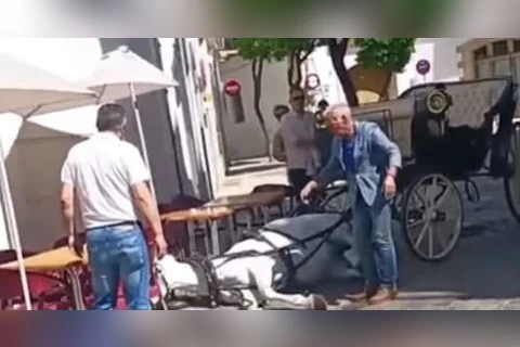 Cavalo que puxava carroça cai exausto três vezes e imagens geram revolta nas redes sociais