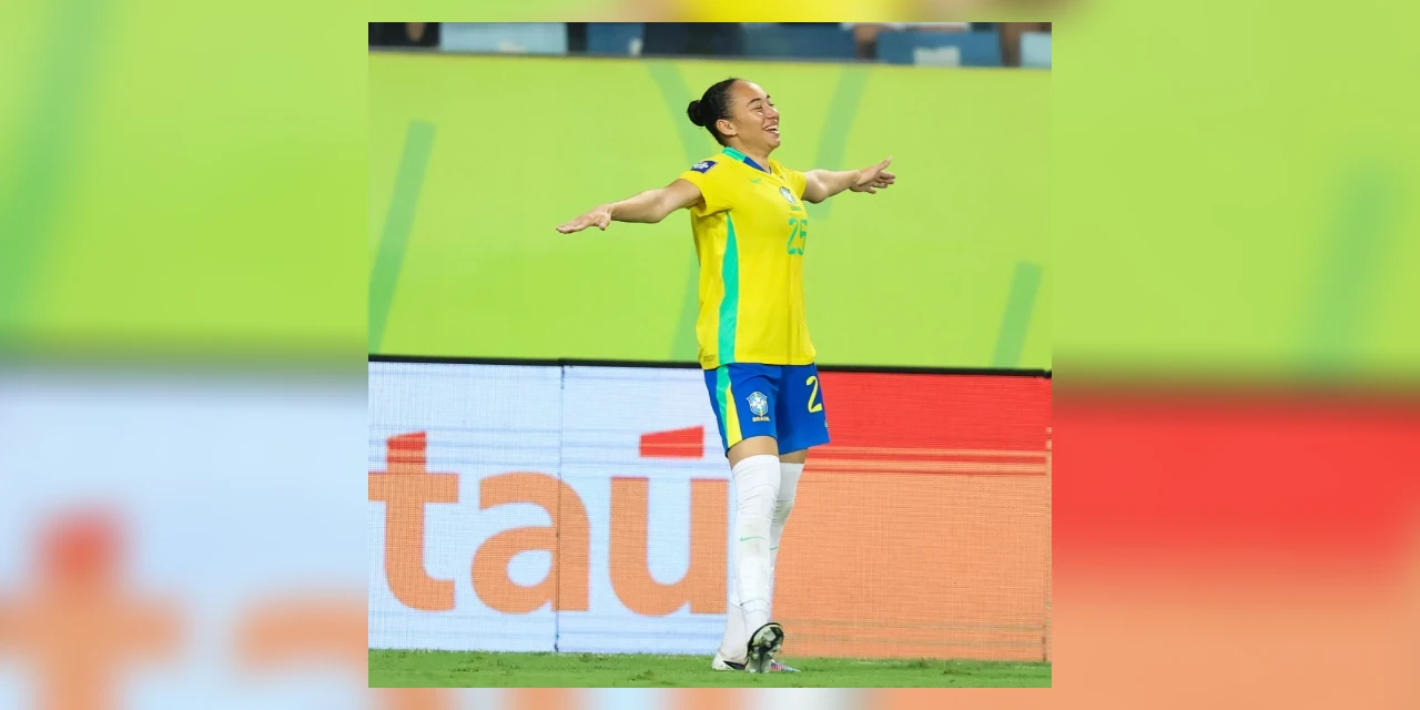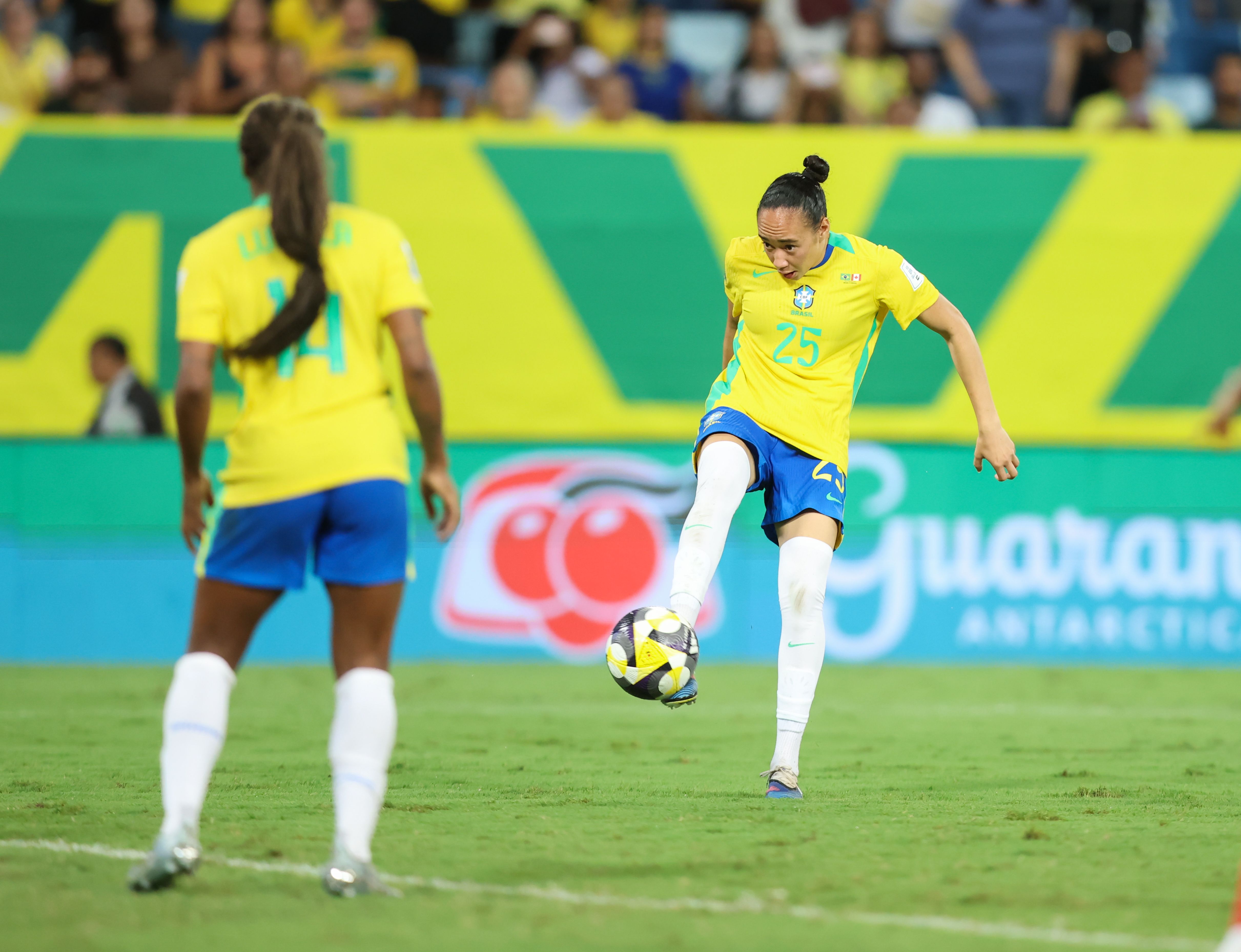 “É minha segunda convocação seguida, foram três jogos: o primeiro eu comecei titular, o segundo eu entrei no intervalo e fui muito elogiada, e o no terceiro eu fui titular também e pude ser coroada com esse gol, meu primeiro gol com a Seleção, e fechar com chave de ouro esse campeonato. Minha mãe e meu irmão estão no estádio hoje, então com certeza é um dia que vai ficar marcado na minha memória”, completou.