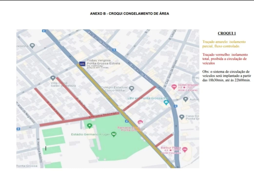 Nesta quinta-feira (17), em razão da partida entre Operário Ferroviário Esporte Clube (OFEC) e Clube de Regatas Brasil (CRB), válida pela Série B do Campeonato Brasileiro, haverá interdição parcial de vias no entorno do Estádio Germano Krüger, em Ponta Grossa.