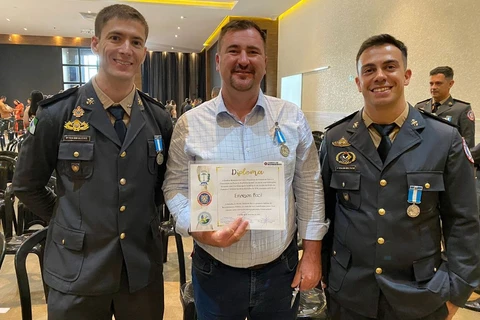 “Estou honrado e emocionado, nesta sexta-feira, tive a incrível oportunidade de receber a prestigiosa MEDALHA MÉRITO PÉROLA DO SUL, das mãos da primeira dama do estado, Luciana Saito Massa e a convite da corporação de bombeiros. É com imensa alegria que compartilho esse momento especial, que aconteceu durante a Solenidade de Comemoração dos 75 anos da corporação de Bombeiros de Irati. Receber esse reconhecimento é um verdadeiro privilégio e me enche de gratidão. Agradeço a todos que fazem parte dessa admirável corporação de bombeiros, que não apenas celebra aniversário, mas também 75 anos de dedicação, coragem e serviço à comunidade. Essa medalha representa não apenas uma honraria, mas um compromisso renovado de contribuir para um mundo melhor. Que venham mais anos de bravura e serviço exemplar”; disse Bacil