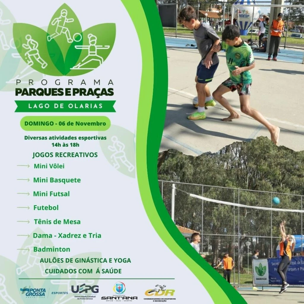 A Prefeitura de Ponta Grossa vai promover neste domingo (06), no Lago de Olarias, o Programa Parques e Praças. O projeto visa levar até a população mais esporte e saúde.