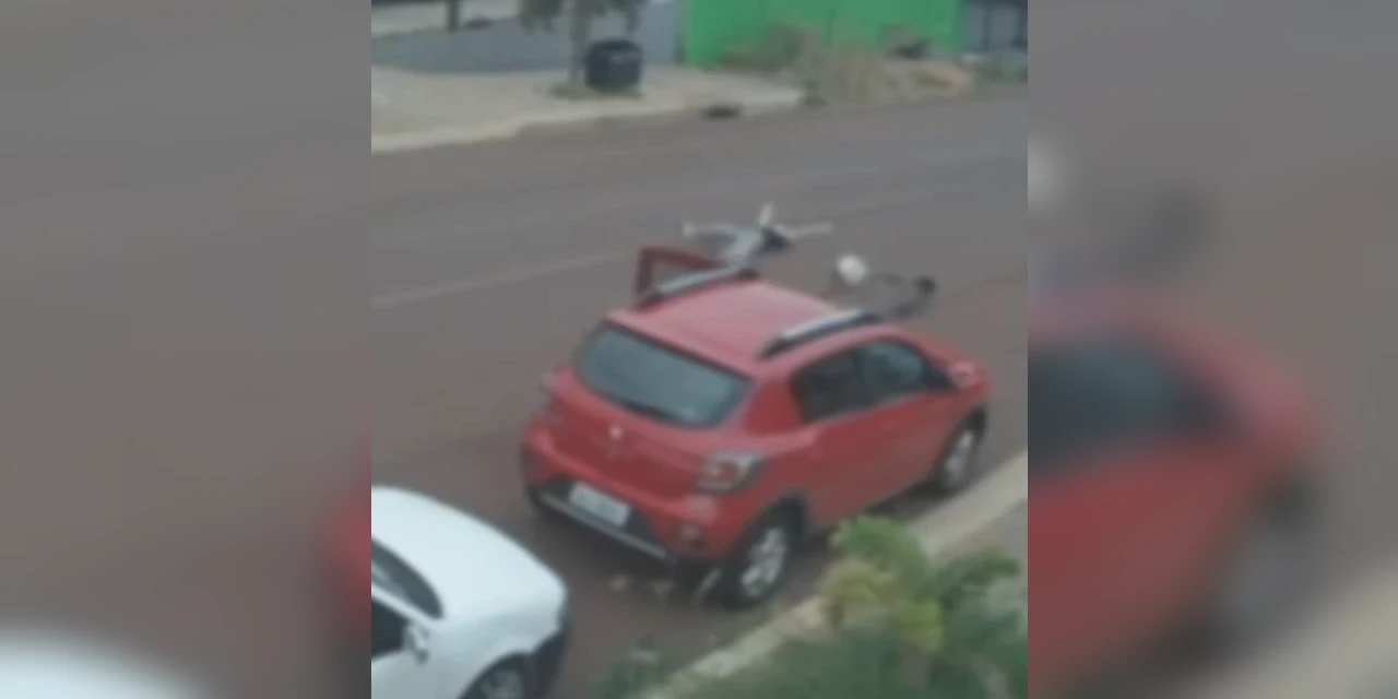 No mesmo instante, a menina, que trafegava sem capacete ou qualquer equipamento de proteção individual (EPI), colidiu violentamente contra a porta do carro.