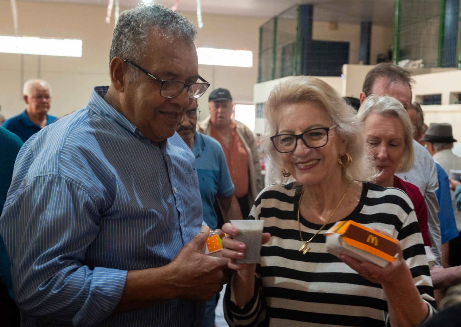 No Baile da melhor idade, realizado no CECON, idosos também receberam o mimo como símbolo de cuidado e respeito. Além disso, vouchers foram distribuídos aos CRAS e entidades parceiras, permitindo que essas famílias retirassem seus lanches de forma autônoma.
