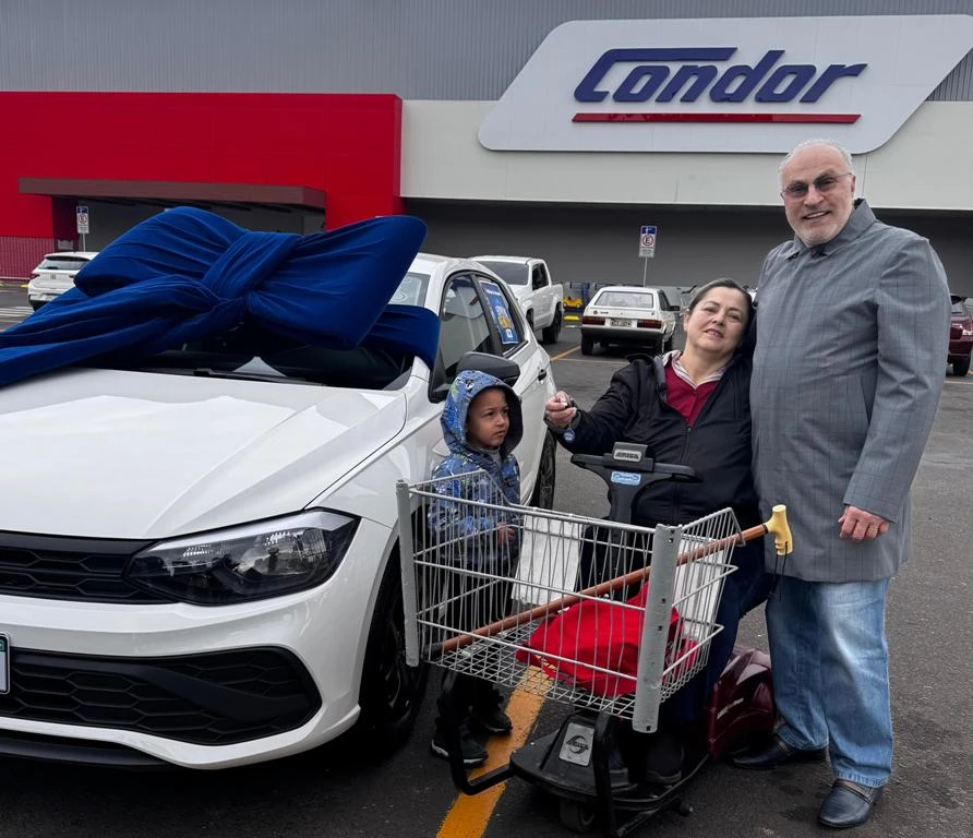 Em meio a um ano marcado por desafios pessoais e questões de saúde, Flora Ciumachevicz encontrou um motivo para celebrar. A idosa, que sofreu um acidente vascular cerebral (AVC) recentemente, foi surpreendida ao receber a notícia de que havia ganhado um carro zero quilômetro na Campanha Semanas Premiadas Condor. "Este ano foi pesado, tive AVC e fiquei hospitalizada. Meu carro estava todo batido por causa do AVC e agora ganhei um novo. Veio na hora certa, considero um recomeço após tantas dificuldades", revelou Flora, emocionada.