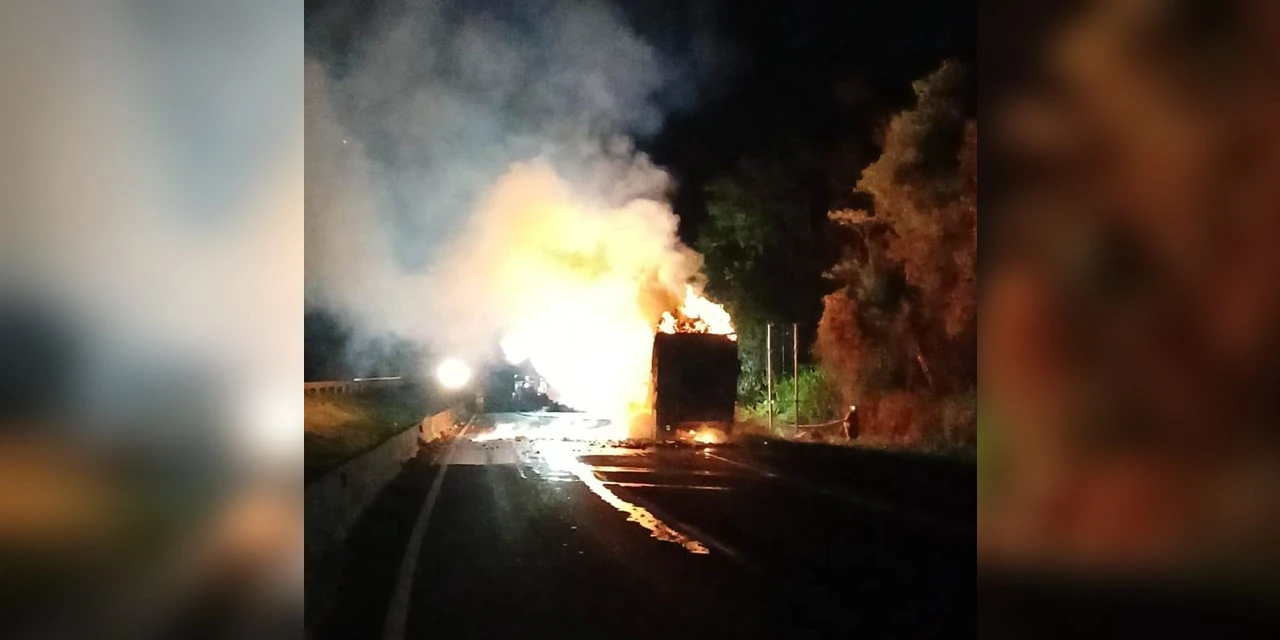 Em Imbaú/PR na BR 376 km 383 sentido decrescente, por volta de 01:30 desta quinta-feira (12), ocorreu um sinistro do tipo incêndio de veículo envolvendo uma combinação de carga tracionada pelo Scania G360 com placas de Maringá/PR.