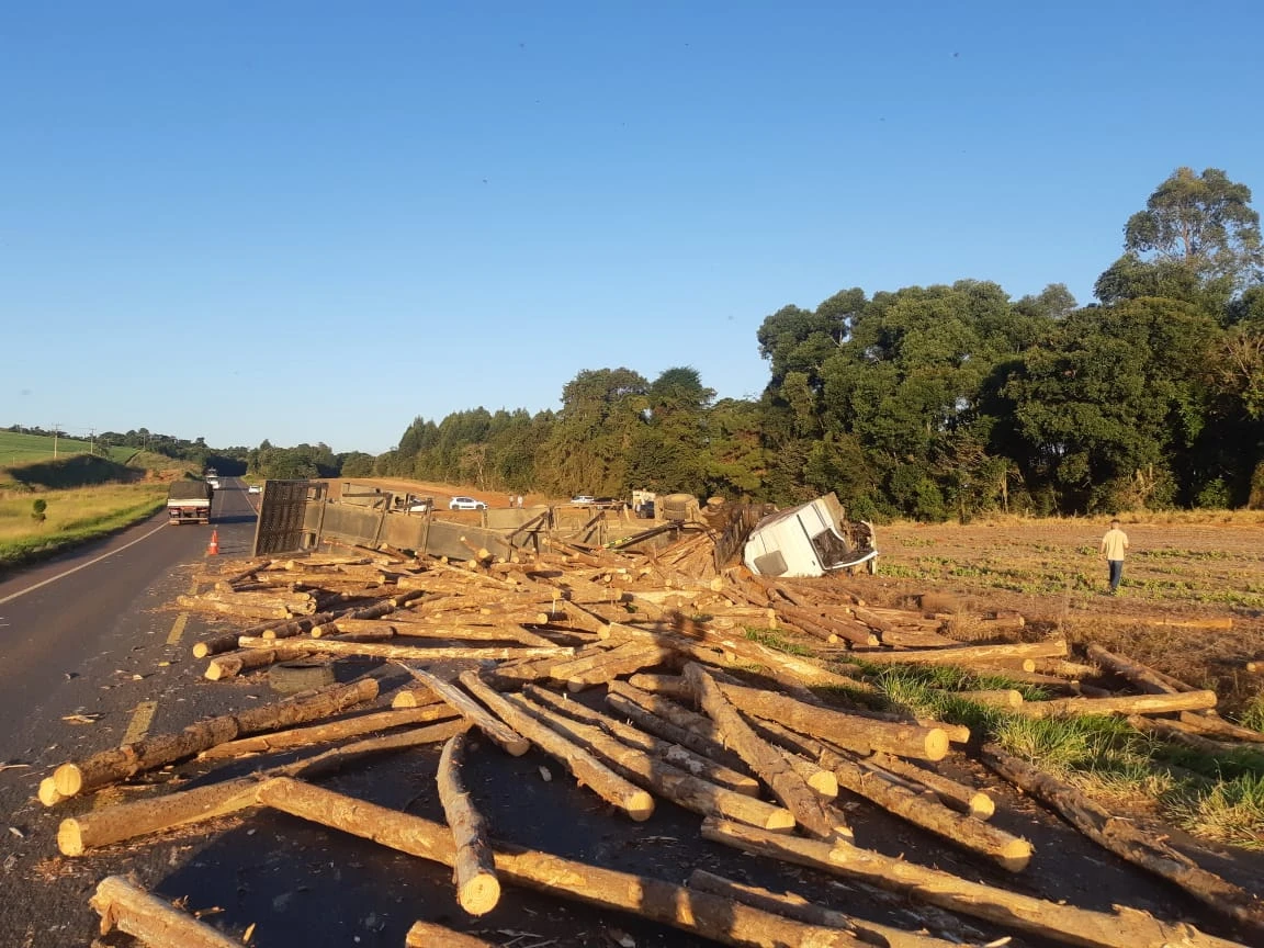 A carga de toras espalhou-se por cerca de 70 metros pela rodovia. Equipes do IML e polícia científica estiveram no local e o corpo foi encaminhado para o IML de Ponta Grossa.
