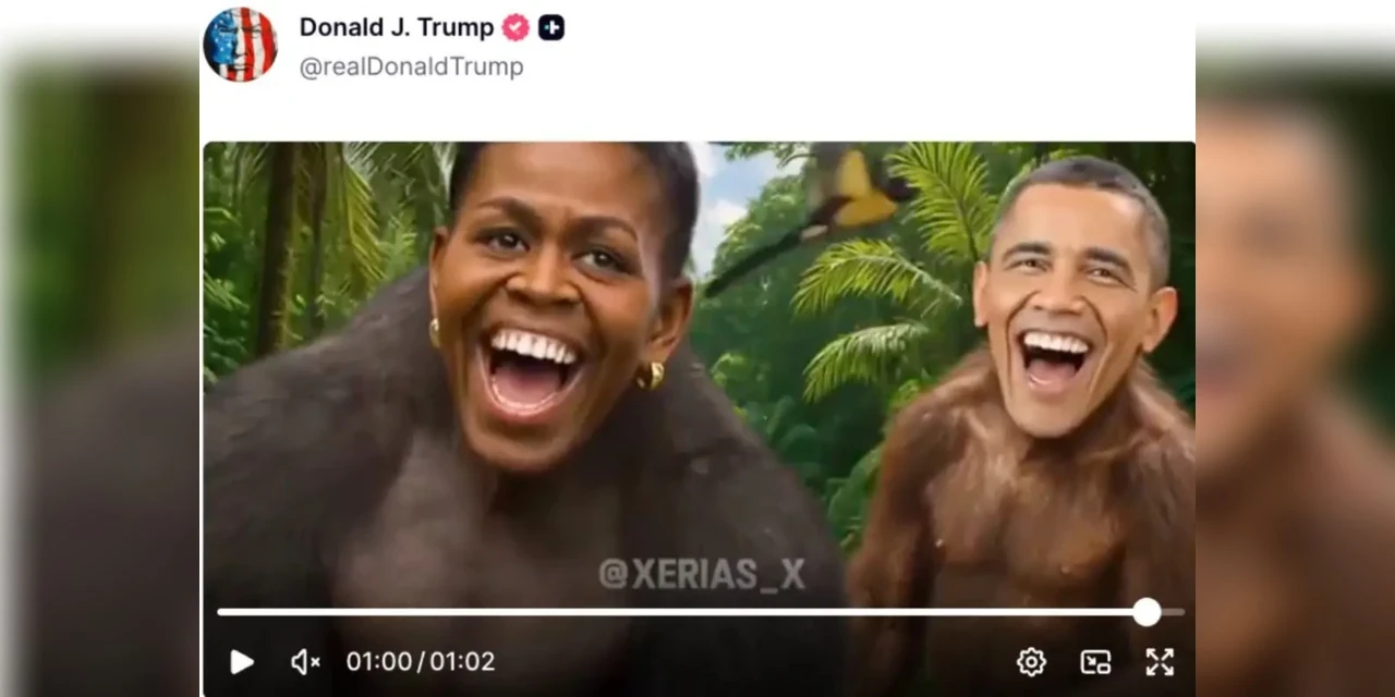 Trump posta vídeo racista com casal Obama como macacos