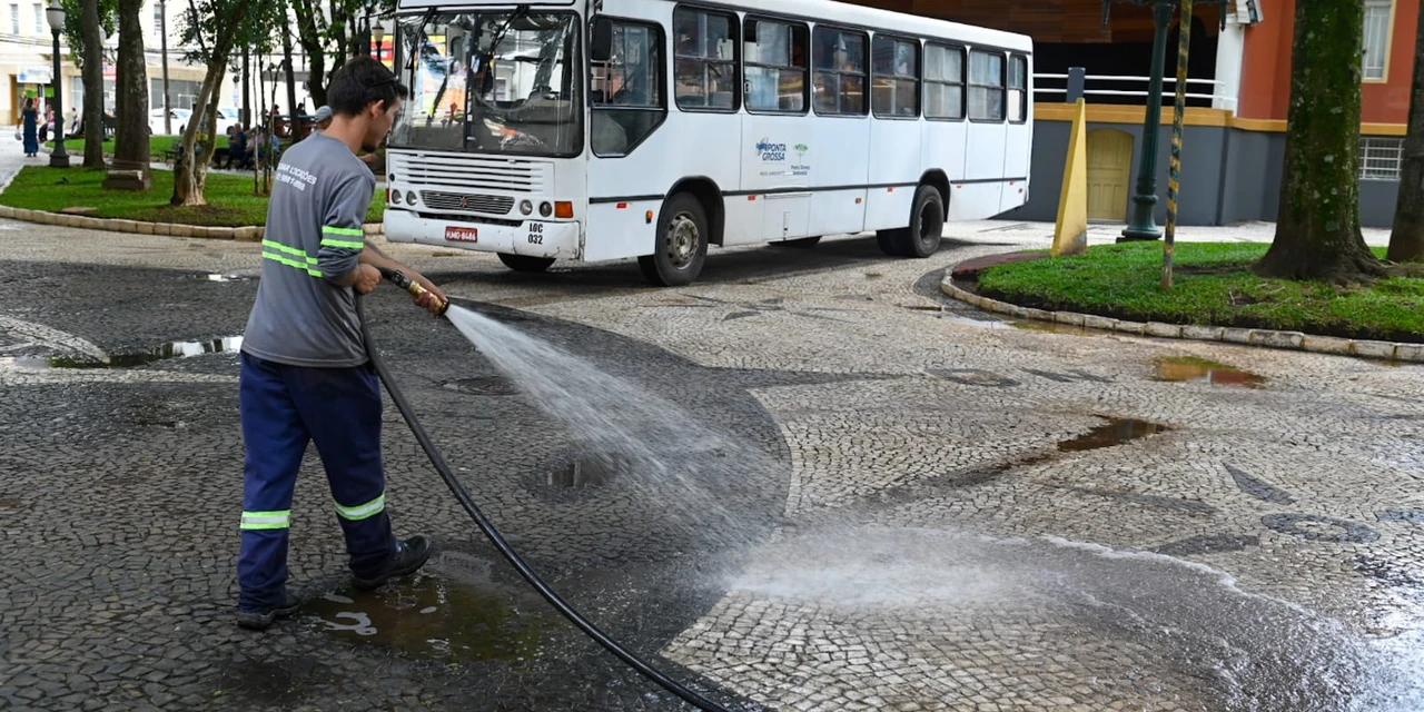 A Prefeitura Municipal de Ponta Grossa deu continuidade, nesta quarta (1º) e quinta-feira (02), ao cronograma de revitalização de diversas praças da cidade. Desta vez, a força-tarefa foi realizada na Praça Barão do Rio Branco, no Ponto Azul, com serviços de limpeza pesada, reparos e reforço na sinalização horizontal da região.