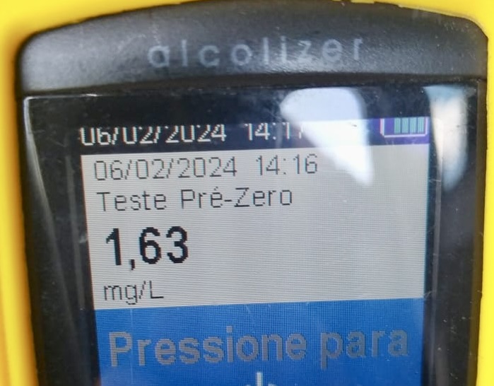 - Bafômetro apontou 1,63 mg/l