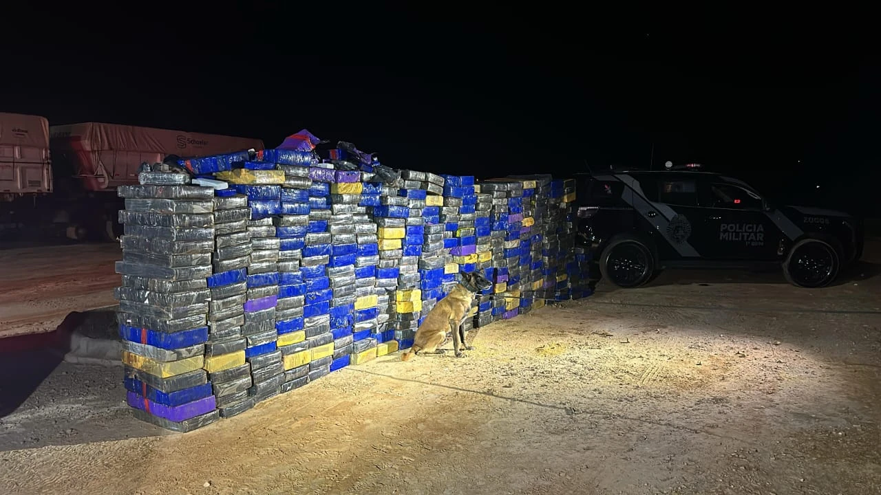 A ação teve início após informações repassadas por agentes da Delegacia da Polícia Federal de Ponta Grossa, indicando que um caminhão bitrem estaria transportando drogas pela rodovia. Diante disso, a equipe do Batalhão de Polícia Rodoviária Estadual (BPRv) montou um bloqueio e conseguiu abordar o veículo suspeito, acionando o Choque K9.