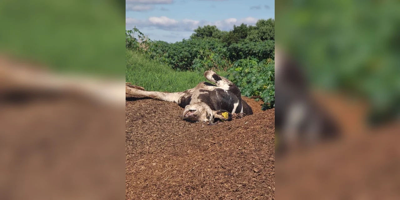 Ao chegarem ao local, as equipes identificaram o descarte de diversas carcaças de gado bovino abandonadas a céu aberto, sem qualquer tipo de cobertura ou impermeabilização do solo para evitar a contaminação. Além da exposição dos animais mortos, foi verificada a existência de uma lagoa de estrume sem o tratamento adequado, evidenciando uma grave falha no manejo de resíduos da propriedade.
