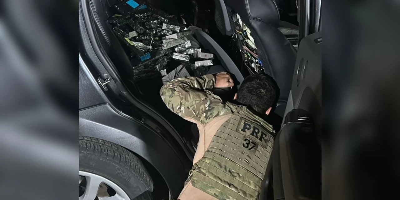 Durante fiscalização de uma Land Rover Range Rover em Irati (PR), por volta das 23h, os policiais encontraram a mercadoria oculta abaixo do assoalho do veículo, também foram localizados 72 aparelhos celulares. O veículo e os produtos foram apreendidos e um homem foi encaminhado à Polícia Federal de Ponta Grossa (PR).
