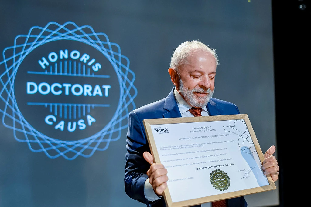 O presidente Luiz Inácio Lula da Silva recebeu, nesta sexta-feira (6/6), o título de Doutor Honoris Causa na Universidade de Paris 8. A instituição foi fundada em 1969 como resposta às transformações sociais e educacionais impulsionadas pelos protestos de Maio de 1968 na França. É localizada na região periférica da capital francesa e tem o propósito de democratizar o ensino superior. Mantém forte vínculo com a classe trabalhadora, com públicos marginalizados e imigrantes.