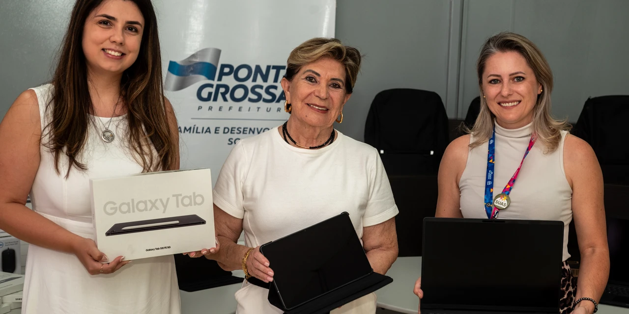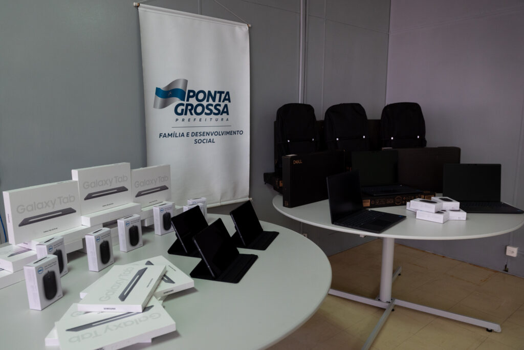 Ao todo, foram entregues 12 notebooks, acompanhados de mouse e mochila, e 17 tablets com caneta e capa, que passarão a ser utilizados pelas equipes da Fundação de Assistência Social de Ponta Grossa. Os equipamentos foram adquiridos pela Secretaria Municipal da Família e Desenvolvimento Social, por meio de licitação realizada com recursos do Fundo da Criança e do Adolescente, do Governo do Estado.