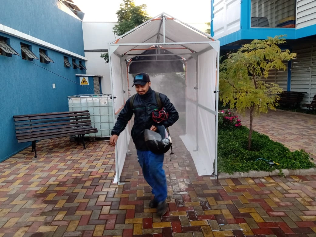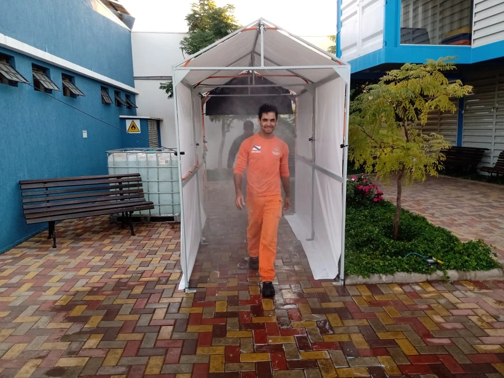 Os colaboradores deverão passar pela cabine tanto no início como no final dos turnos, para garantir a higienização completa de roupas, calçados e equipamentos de proteção individual. Vítor Moreira Borsato, Diretor do Grupo, explicou que a empresa avaliou as melhores formas de garantir segurança e saúde dos colaboradores, e concluiu que a cabine de desinfecção poderia ser uma excelente solução.