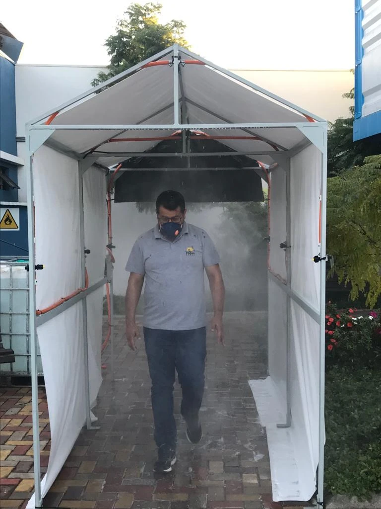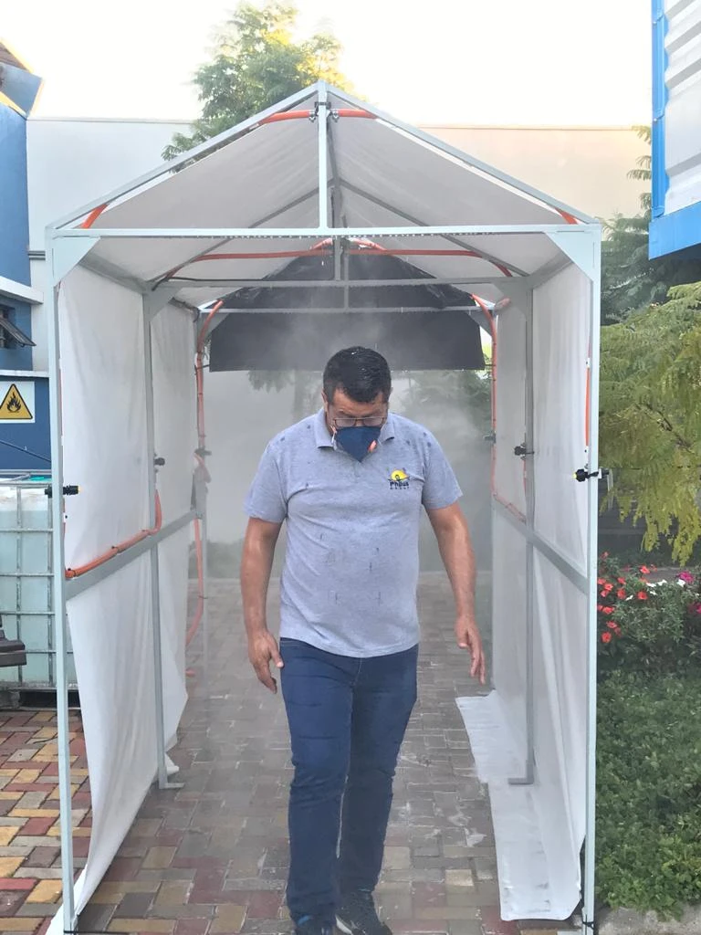 As cabines possuem alta tecnologia, e utilizam bicos de atomização especiais que transformam o produto líquido em uma espécie de névoa distribuída uniformemente sobre toda a superfície das roupas e EPIs dos colaboradores. “O produto desinfectante utilizado foi desenvolvido em conjunto com outra empresa pontagrossense (Forward Química), é excelente no combate ao vírus, e não apresenta qualquer risco à saúde”, comenta.
